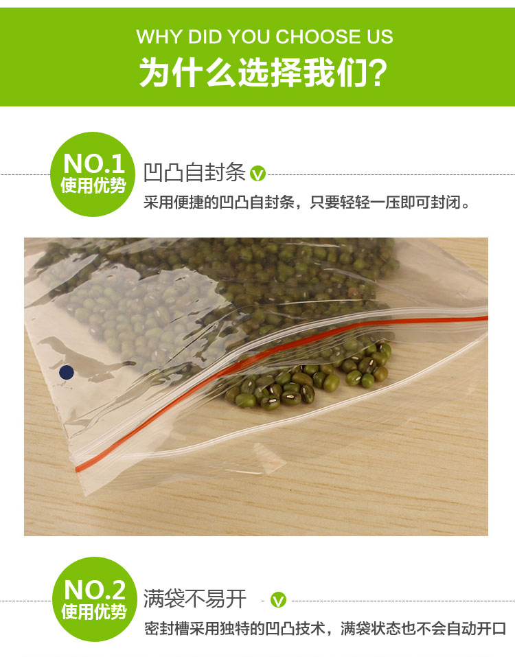 1.家庭方面用于包裝各類食品如蔬菜 水果 魚 肉及調(diào)味料等的保鮮專用袋 可放置冰箱 冰柜 冷藏 冷凍